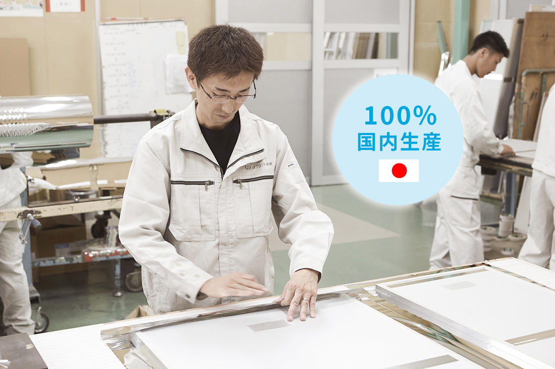 リフェクスミラーは、すべて日本国内の工場で熟練の職人によって、一枚一枚丁寧に手作業で作られています。